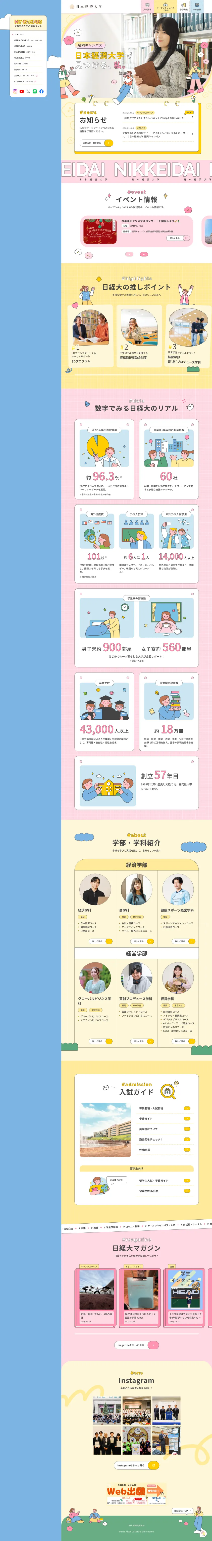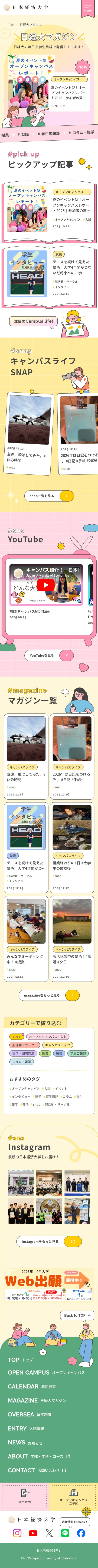 日本経済大学を目指す受験生のための情報サイト、MY CAMPUS。初めてこの大学について調べる方にも、既に関心を持っている方にも、学部・学科の紹介や入試情報、キャンパスライフまで、受験生が知りたい情報をわかりやすくまとめています。未来の自分を想像しながら、ワクワクと読み進めていただけるサイトに仕上がりました。